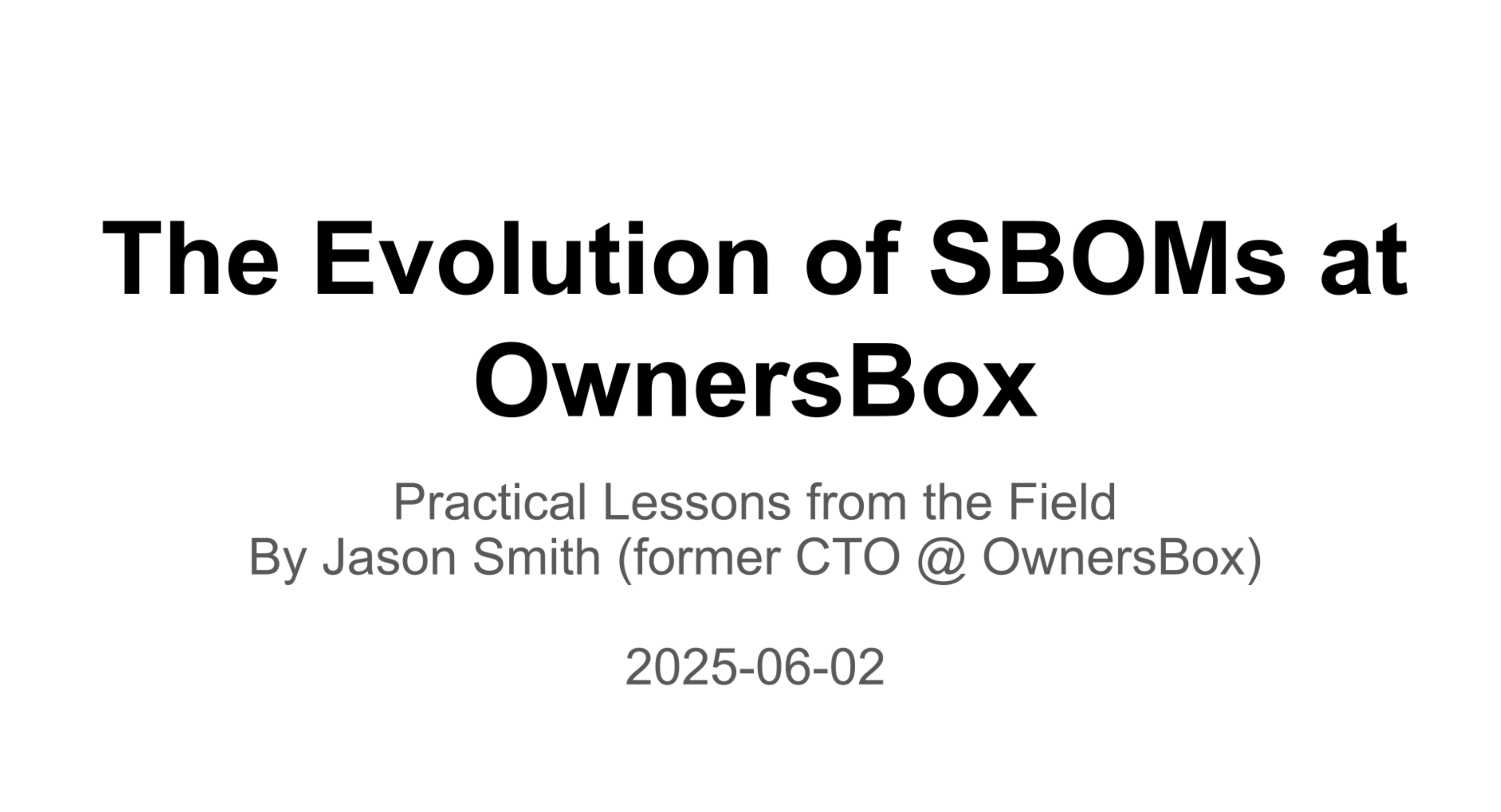 I gave a presentation at the CISA SBOM Community Weekly Meeting yesterday where I shared how we approached SBOMs in my latest role at OwnersBox. SBOM adoption here was driven by a real need rather than just to check a box on some regulatory/compliance framework requirement (these checkboxes later became an added benefit).